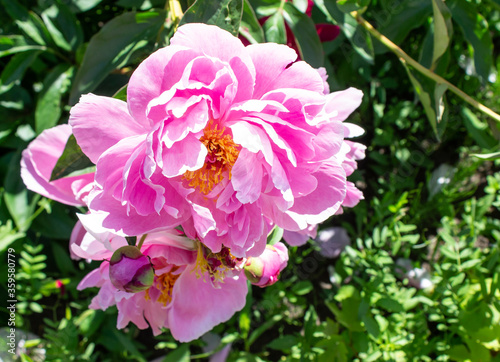 Obraz premium Photo peon pink flower on a bush close up