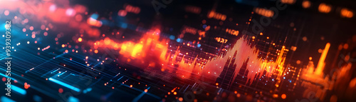 © HaJung, Obraz premium Photo Realistic as Glossy Glowing Holographic Laptop and Calendar concept as A photo featuring a glossy glowing holographic laptop and a calendar. The objects are positioned towards the right highligh