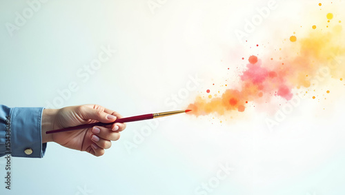 Fototapeta premium Photo Realistic Image of a Person with a Magic Paintbrush and Floating Color...