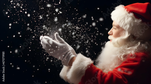 Obraz premium Photo Santa Claus blowing magic snow of his hands happy Christmas day