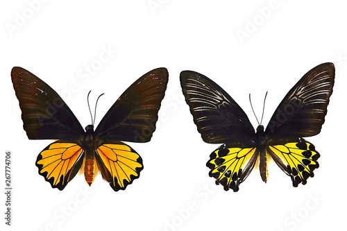 © Kitichai, Obraz premium Photo two butterflies straff for natural animal studies on white backgound.
