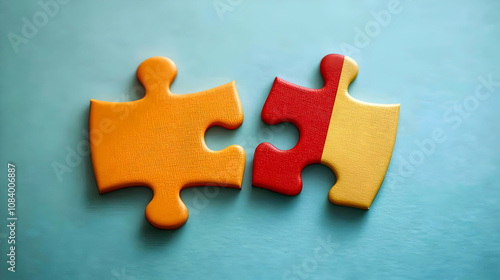 © queen, Obraz premium Photo Two Puzzle Pieces Teamwork Connection Solution