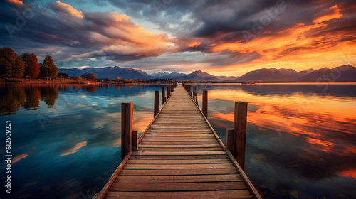 Obraz premium Photo view from the deck of a beautiful sunset with mountains