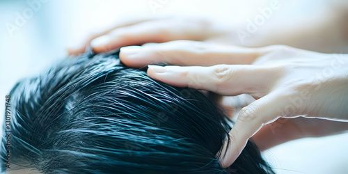 © Siasart Stock, Fototapeta premium Photo Wet Hair Care, Treatment, Health, Beauty, Wellness, Hands, Fingers, Touch, Soft, Gentle