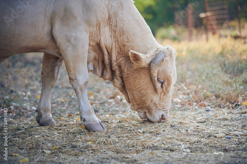 Fototapeta premium Photograph of a bull eating