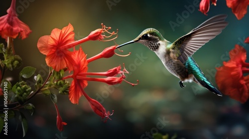 Fototapeta premium Photograph of a hummingbird hovering in mid-air,