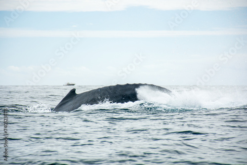 © DianaGuadalupe, Fototapeta premium Photograph of a humpback whale jumping in the sea off Cabo San Lucas, Baja California, Mexico.
