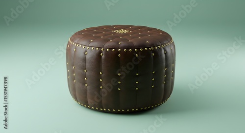 © ADEV, Fototapeta premium Photograph of a Leather Ottoman with Gold Studs on a Solid Background