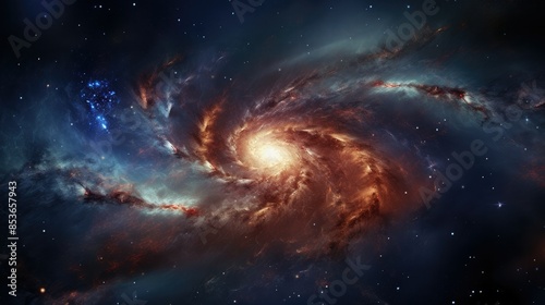Fototapeta premium Photograph of a majestic spiral galaxy, its arms adorned with glowing...