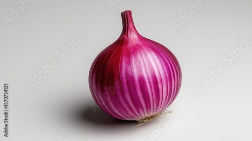 Fototapeta premium Photograph of a single red onion. the onion is in the center of the image and...
