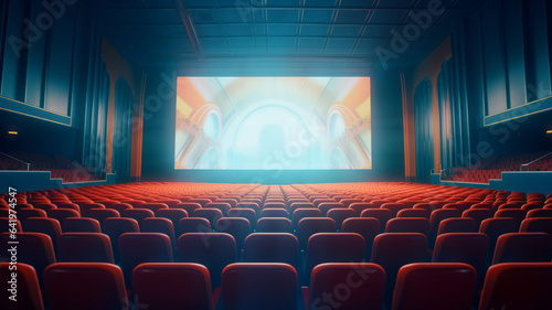 Fototapeta premium photograph of Cinema concept, Empty cinema screen with audience.generative ai