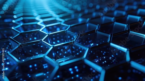 © ปฏิภาน ผดุงรัตน์, Obraz premium photograph of Hexagon with blue light background.
