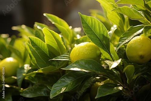 Obraz premium Photograph Of Lemon Leaf Natural Light, Generative AI