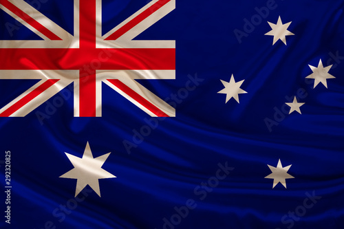 Fototapeta premium photograph of the national flag of Australia on a luxurious texture of satin,...