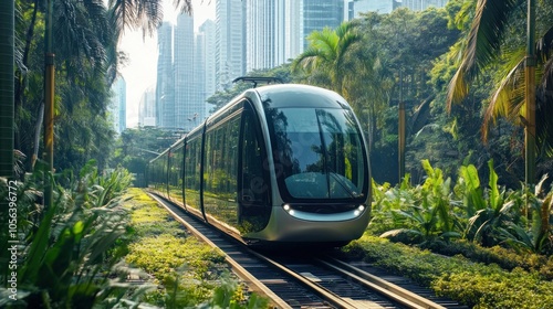 Fototapeta premium photograph of Transportation ideas towards nature conservation Reduce carbon emissions and build sustainable cities for a green future.