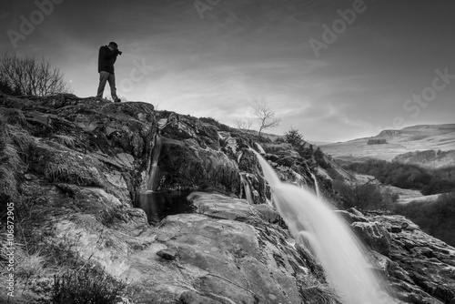 © astar321, Obraz premium Photographer shooting into the Loup of Fintry Waterfall