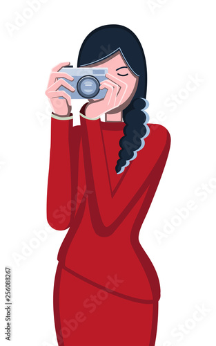 © Тереса Пономарева, Obraz premium Photographer. Woman and camera. Avatar girls. Portrait of a professional. Vector flat illustration. White background. Brunette girl