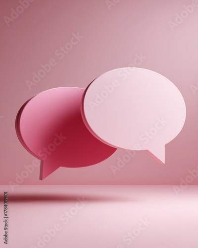 Fototapeta premium Photography masterclass, hyper-minimal editorial scene featuring two soft-edged matte speech bubbles floating in a blush-pink space, one layered slightly behind the other to sugges