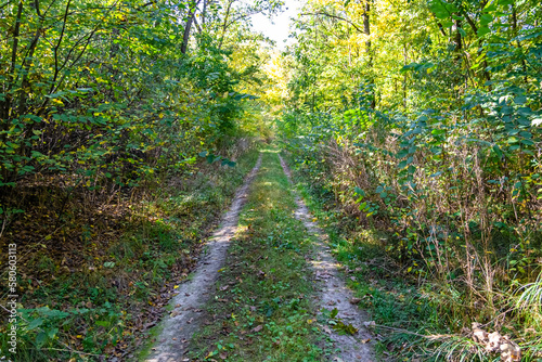 © Olegarx525, Naklejka premium Photography on theme beautiful footpath in wild foliage woodland
