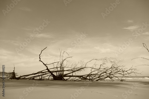 Fototapeta premium photography picture of a wonderful beautiful futuristic tree trunk against the backdrop of the sea horizon of nature.