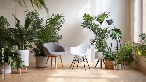 Fototapeta premium Photography studio's natural light test setup with a minimalist background