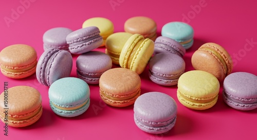 © Justins, Obraz premium Photorealistic Colorful Macarons Displayed on a Vibrant Pink Background