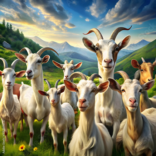 © Muhammad, Obraz premium photorealistic flock of goats in nature