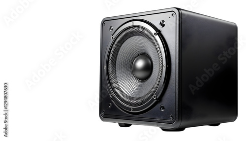 © SiBams, Obraz premium Photorealistic Image - Powerful Audio Speaker with Metal Grille on Black Background