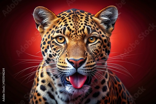 Fototapeta premium Photorealistic Leopard Night Photography on Red Background - Wildlife Close-Up