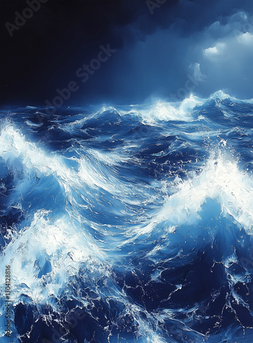 Fototapeta premium Photorealistic Ocean Waves with Foam and Ripples in Blue Water - Realistic...