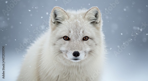 Obraz premium Photorealistic portrait of an Arctic fox in its winter white coat, curious...