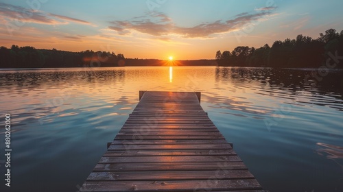 © Ilsol, Naklejka premium Photorealistic Summer Sunset at the Lake | Summer Background | Photorealistic