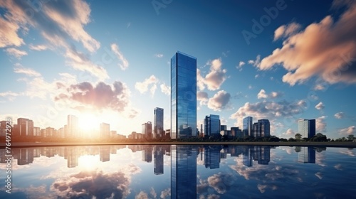 Fototapeta premium Photorealistic Tall building and behind it a beautiful and sky