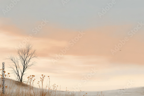 Obraz premium photorealistic ultraminimalist landscape showcasing serene beauty of nature with emphasis on simplicity