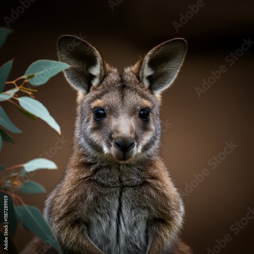 Fototapeta premium Photorealistic wallaby portrait, close-up, soft fur texture, alert ears,...