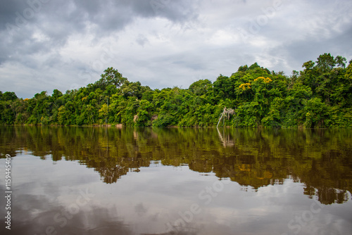 Fototapeta premium PHOTOS OF THE NANAY RIVER IN THE PERUVIAN AMAZON, BLACK WATER RIVER OR IGAPO IN THE FLOODABLE FORESTS NEAR THE ALLPAHUAYO MISHANA NATIONAL RESERVE