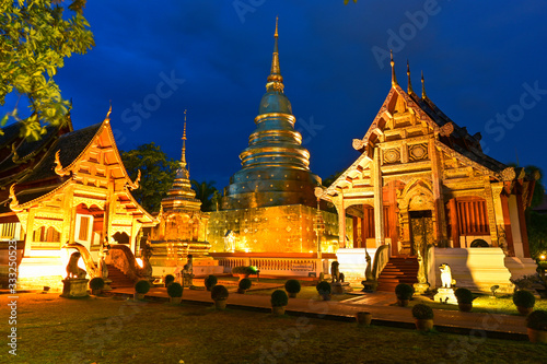 © Chaiyuth, Naklejka premium Phra Sing temple,landmark for tourist at Chiang Mai,Thailand.Most favorite landmark for travel Phra Sing temple at night scene.