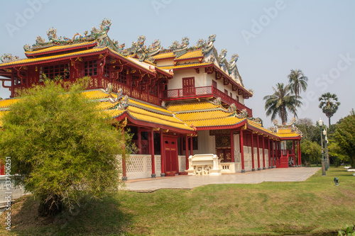 © Thanaphon, Fototapeta premium Phra Thinang Wehart Chamrun in Bang Pa-In Royal Palace or the Summer Palace that is a palace complex formerly used by the Thai kings in Ayutthaya Province Thailand.
