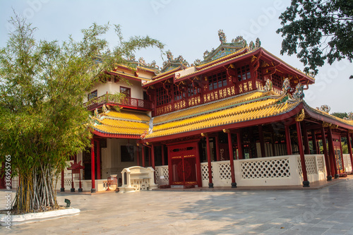 © Thanaphon, Fototapeta premium Phra Thinang Wehart Chamrun w Pałacu Królewskim Bang Pa-In lub Pałac Letni, czyli kompleks pałacowy, który był dawniej używany przez królów Tajlandii w prowincji Ayutthaya w Tajlandii.