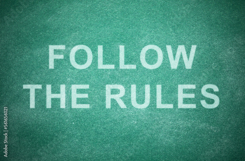© New Africa, Fototapeta premium Phrase Follow The Rules written on green chalkboard