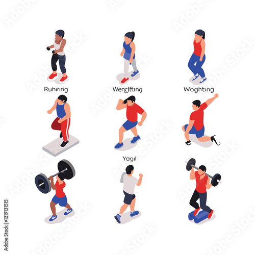 © MDSHAHIN, Fototapeta premium physical activity isometric set vector