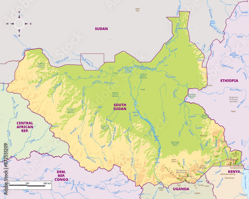 Obraz premium Physical map of South Sudan