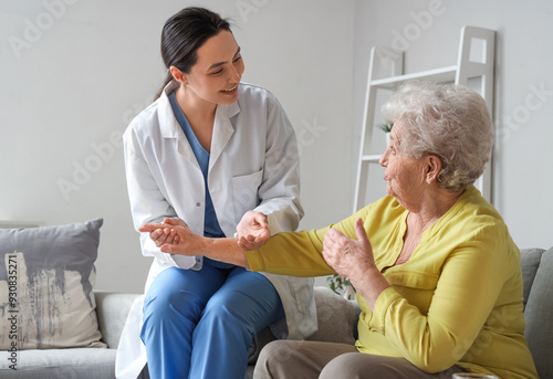 © Pixel-Shot, Obraz premium Physical therapist helping senior woman at home