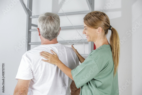 Fototapeta premium Physical therapist helps an elder patient