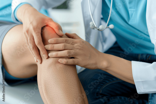 Fototapeta premium physiotherapist massaging athlete knee sports injury rehab physical therapy...