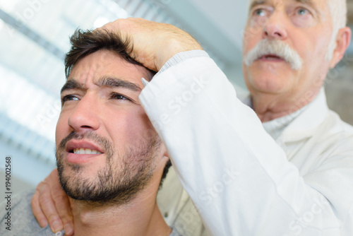 © auremar, Obraz premium physiotherapist massaging patient with neck pain
