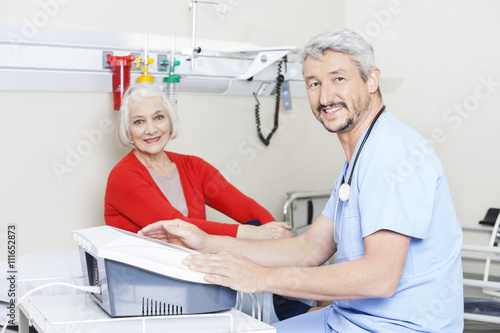 Obraz premium Physiotherapist Using Electromagnetic Machine
