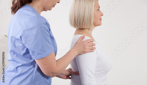 © missty, Fototapeta premium Physiotherapist working with middle aged patient in clinic
