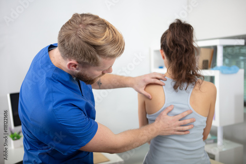 Fototapeta premium physiotherapist working with patient in clinic