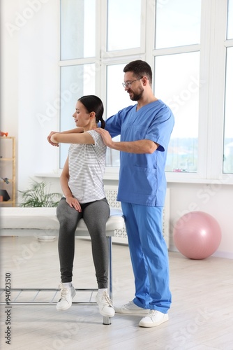 © New Africa, Obraz premium Physiotherapist working with patient in rehabilitation center